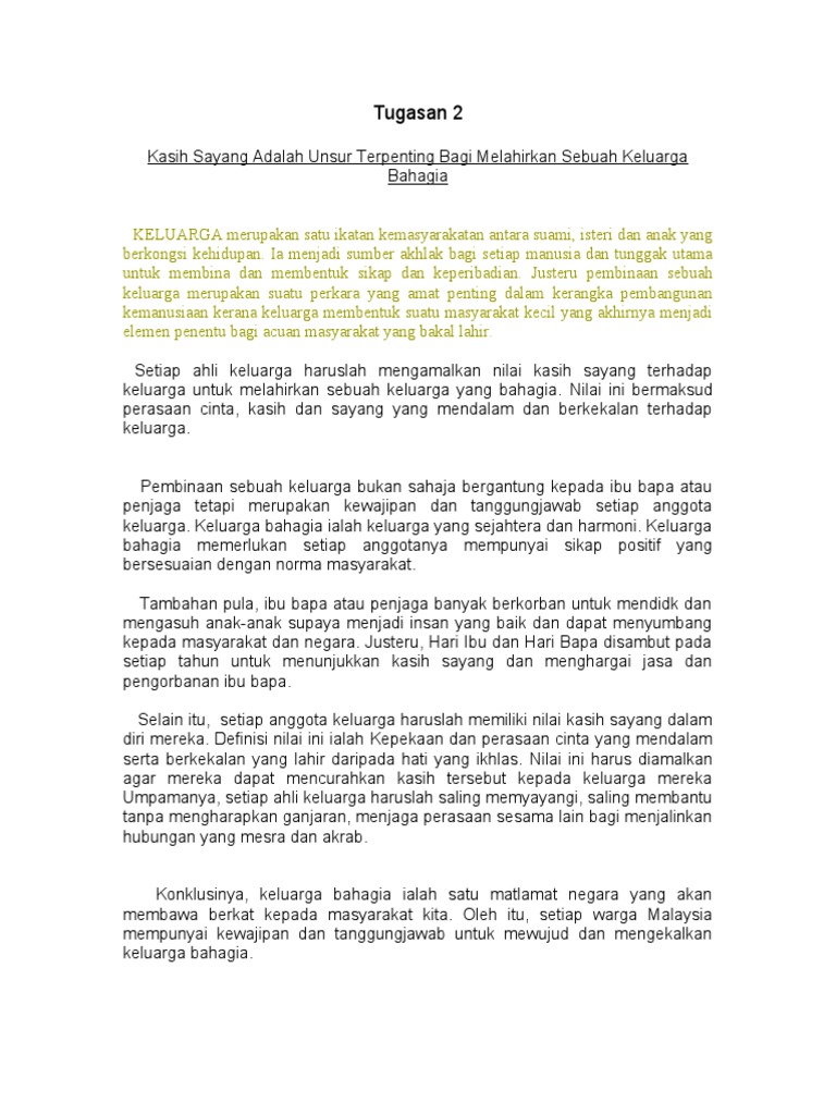 Contoh Karangan Nilai Kasih Sayang Terhadap Keluarga